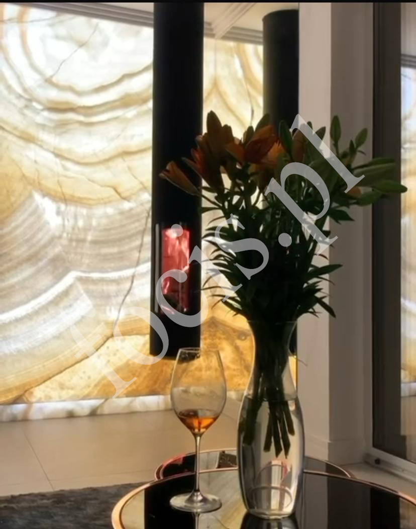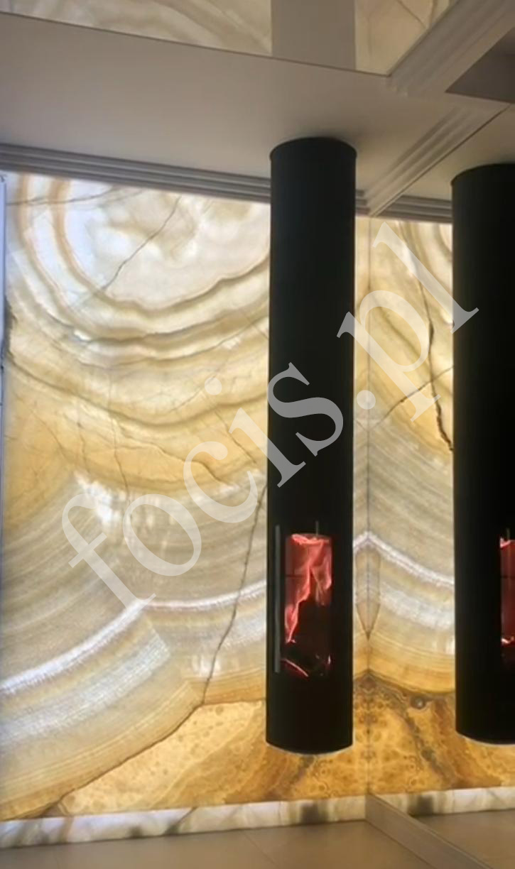 Kamień onyks i podświetlenie – luksusowe tło dla ognia