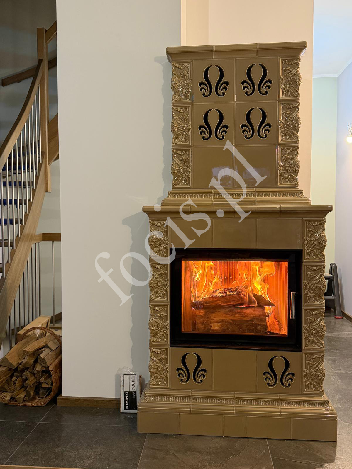 nowoczesny piec kaflowy na drewno,