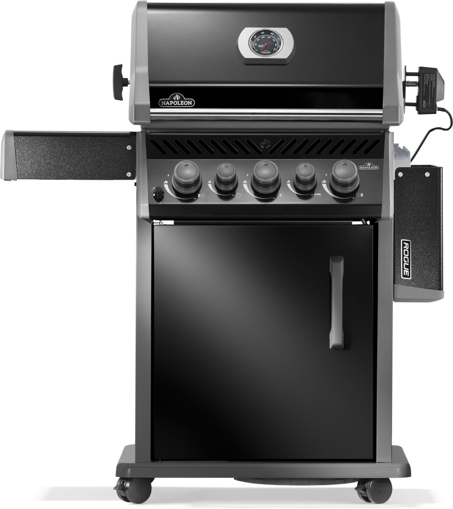 Elegancki, czarny grill gazowy na propan Rogue® 425 marki Napoleon umożliwia intensywne obsmażanie z zachowaniem pełnej soczystości potraw. Kultowe żeliwne ruszty WAVE™ skutecznie magazynują i oddają ciepło, tworząc charakterystyczny wzór grillowania oraz doskonałą strukturę mięsa.