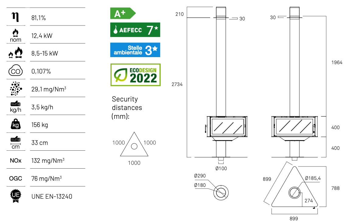 Zamknięta komora spalania zapewnia wysoką efektywność cieplną oraz bezpieczne użytkowanie. Kominek oddaje ciepło w sposób równomierny i stabilny, a nowoczesna konstrukcja sprzyja czystemu spalaniu drewna. Przekłada się to na estetyczny wygląd szyb oraz wygodę codziennej obsługi.