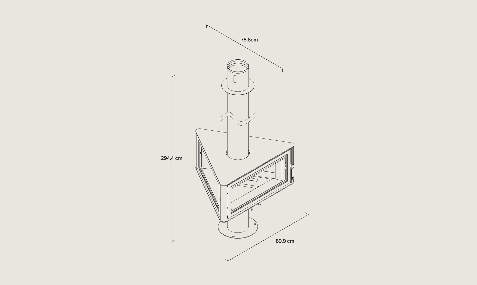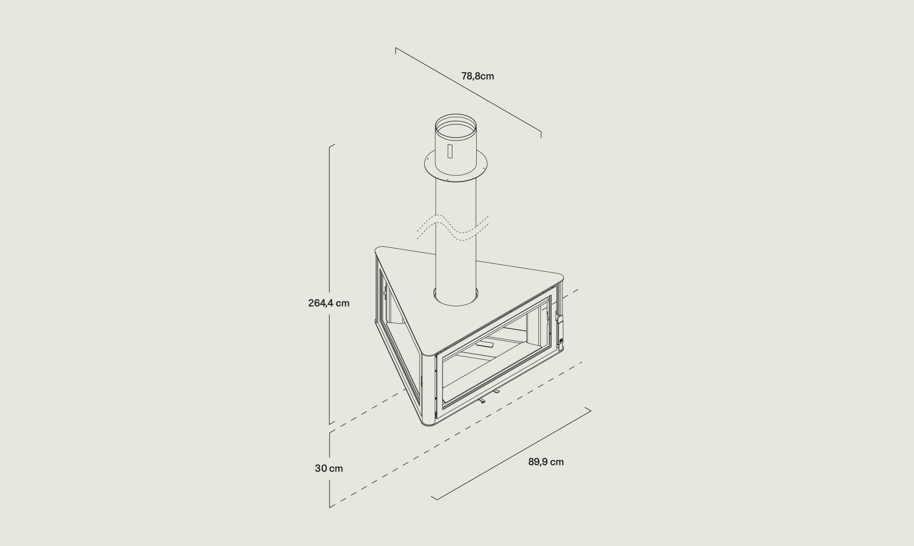 Kominek wyposażony jest w trzyszybową komorę spalania, która zapewnia niemal panoramiczny widok na płomienie. Przeszklenia z trzech stron sprawiają, że ogień jest doskonale widoczny z każdej części pomieszczenia, niezależnie od tego, czy przebywasz w strefie wypoczynkowej, jadalnianej czy komunikacyjnej.