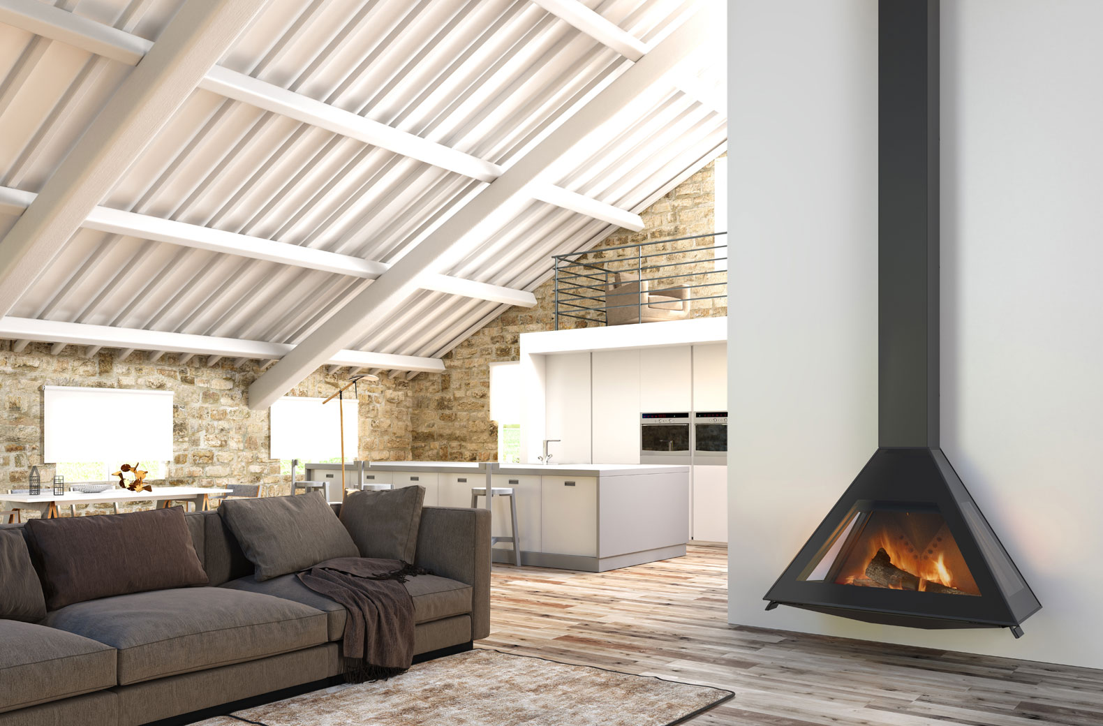 Zawieszona konstrukcja podkreśla lekkość bryły i doskonale wpisuje się w przestronne, nowoczesne wnętrza – salony, lofty oraz otwarte strefy dzienne.