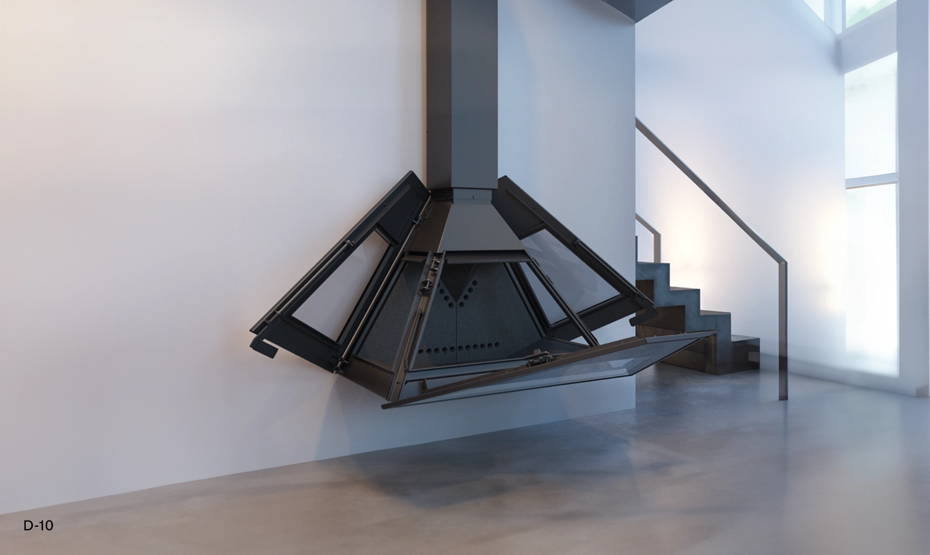 Ten nowoczesny kominek wiszący trójkątny to propozycja dla osób ceniących odważny design i niebanalne rozwiązania architektoniczne. Jego charakterystyczna, geometryczna forma oparta na trójkącie nadaje wnętrzu wyrazisty, nowoczesny charakter i sprawia, że kominek staje się prawdziwą rzeźbą ognia.