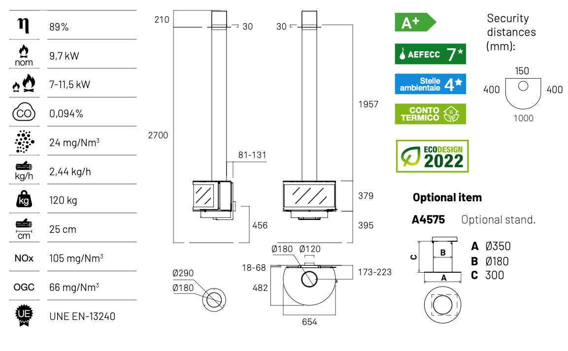 Zamknięta komora spalania zapewnia wysoką efektywność grzewczą oraz bezpieczeństwo użytkowania. Kominek oddaje ciepło w sposób równomierny i stabilny, sprawdzając się zarówno jako nastrojowe źródło ciepła, jak i funkcjonalne uzupełnienie systemu ogrzewania. Nowoczesna konstrukcja sprzyja czystemu spalaniu, co przekłada się na estetyczny wygląd szyby i wygodę codziennej obsługi.