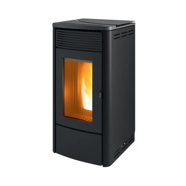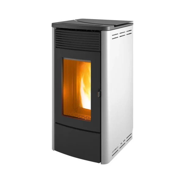 Jest to piecyk powietrzny, najbardziej klasyczny model piecyka na pellet. Pojedynczy wentylator, mocny, ale cichy, skutecznie rozprowadza ciepłe powietrze w pomieszczeniu, w którym zainstalowany jest piec, sprawiając, że w ciągu kilku minut staje się ono ciepłe i przytulne. W zależności od tego, jak dobrze izolowany jest dom i jak jest rozplanowany, piec ten może również ogrzewać bardzo duże pomieszczenia. Moc wentylatora można wybrać w zależności od potrzeb. Ciepły, mocny powiew, aby szybko ogrzać dom lub ledwo wyczuwalny szept, jeśli chcesz utrzymać tę samą temperaturę.