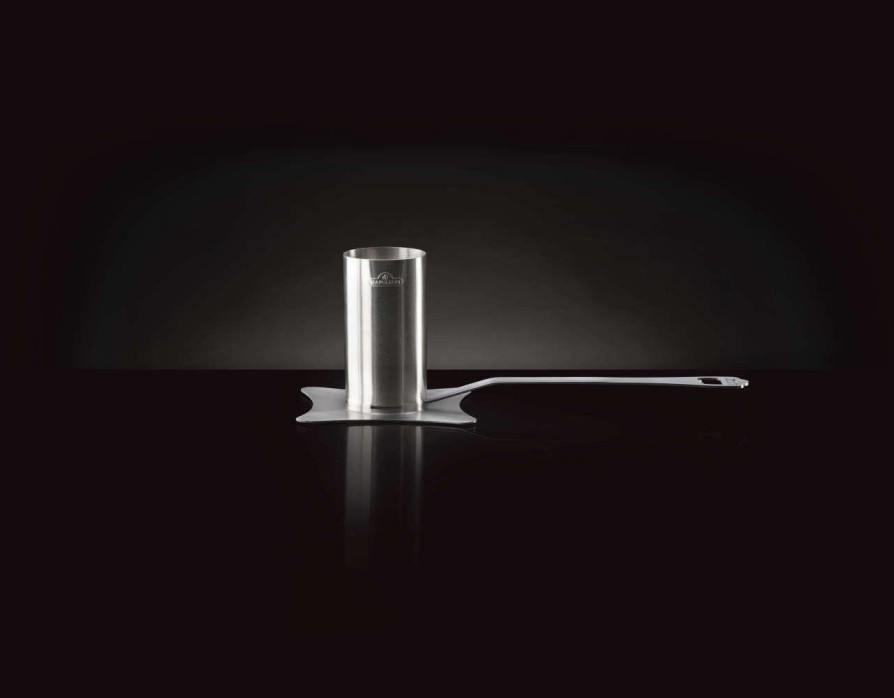 Solidny, zdejmowany uchwyt wykonany ze stali nierdzewnej umożliwia bezpieczne przenoszenie oraz łatwe ustawianie tacy na grillu – zarówno z kurczakiem, jak i bez niego. Uchwyt szybko wsuwa się i wysuwa z podstawy, co zwiększa komfort użytkowania. Całość można myć w zmywarce, dzięki czemu czyszczenie jest szybkie i bezproblemowe, a samo akcesorium pozostaje gotowe do użycia przy każdej kolejnej okazji.